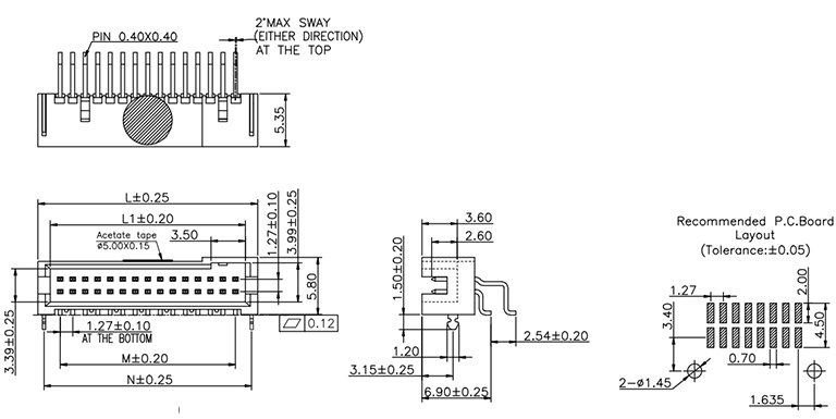 P/H1.27mm Box header ED252(簡牛)