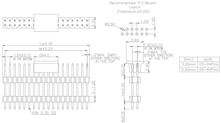 P/H1.0 mm 單排排針 CA101