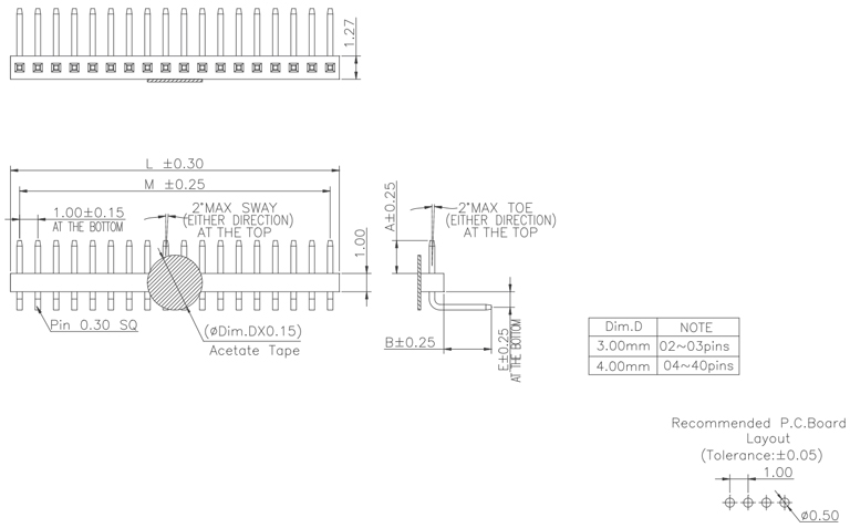 P/H1.0 mm 單排排針 CB101