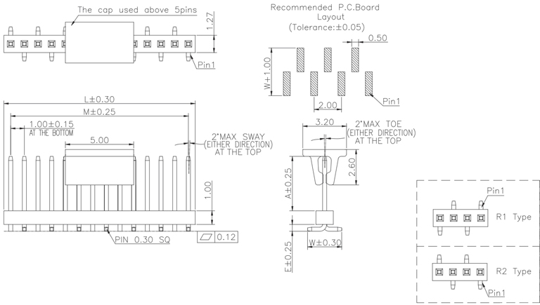 P/H1.0 mm 貼片排針 CC101