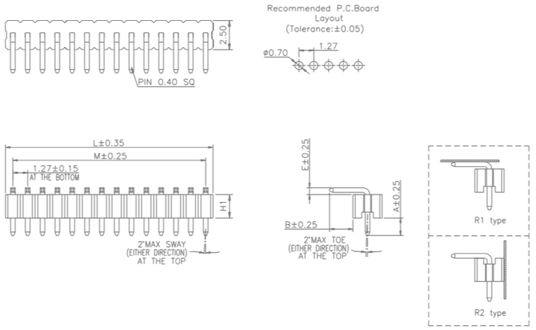 P/H1.27mm 單排排針 EB108