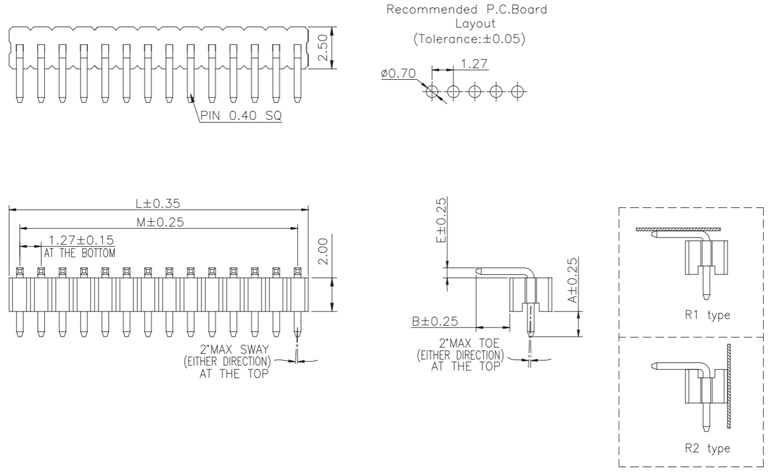 P/H1.27mm 單排排針 EB111