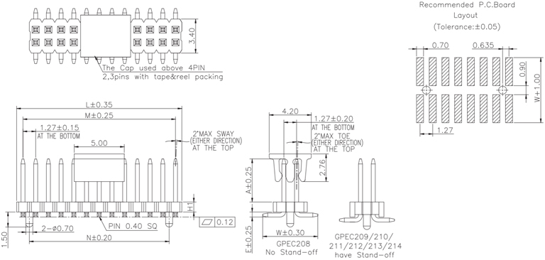P/H1.27mm 雙排排針 EC208
