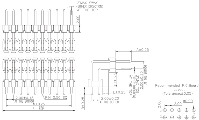 P/H1.0 mm 單排排針 CA101