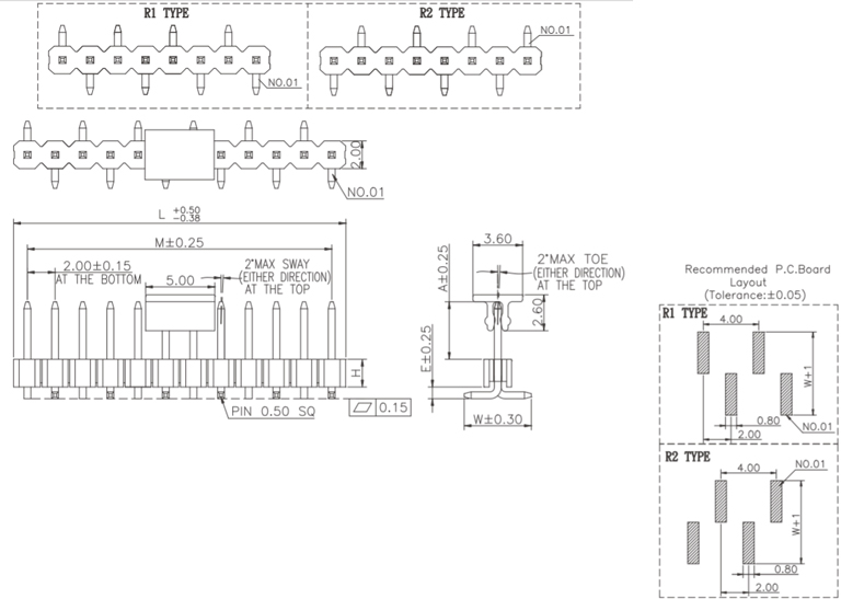 P/H2.0mm 單排排針 FC101