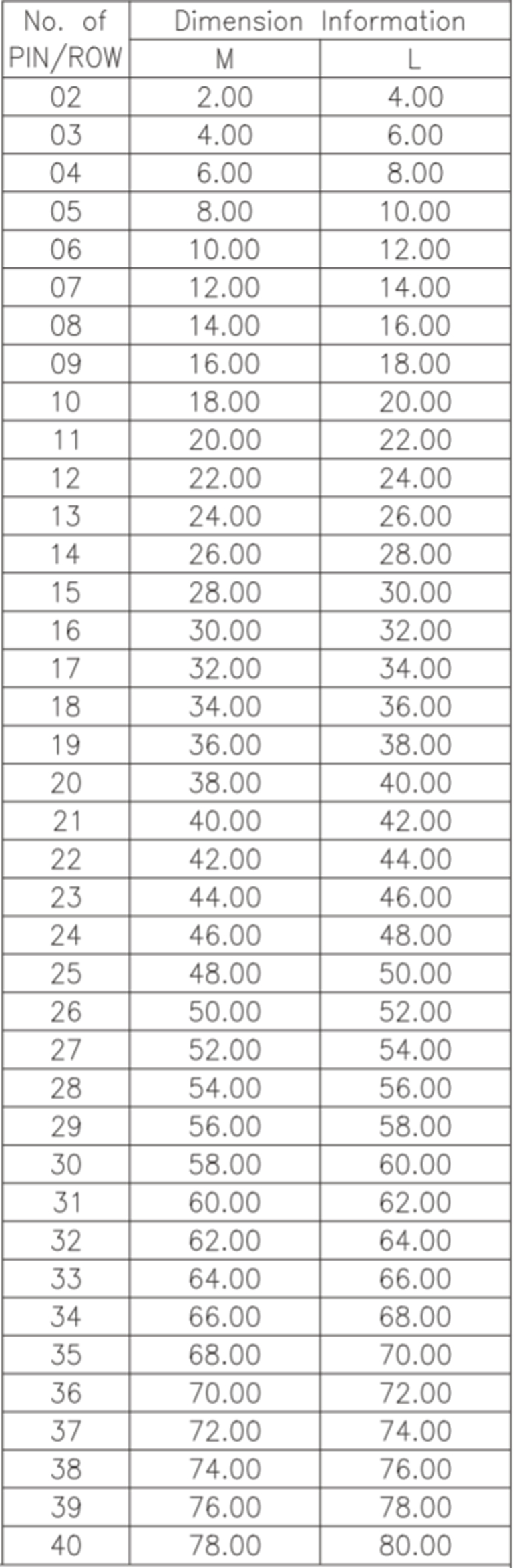 P/H1.0mm 雙排排針 CA201