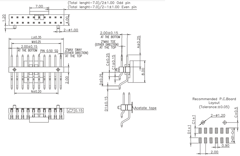 絕緣材料:PBT,尼龍,LCP,UL 94V-0