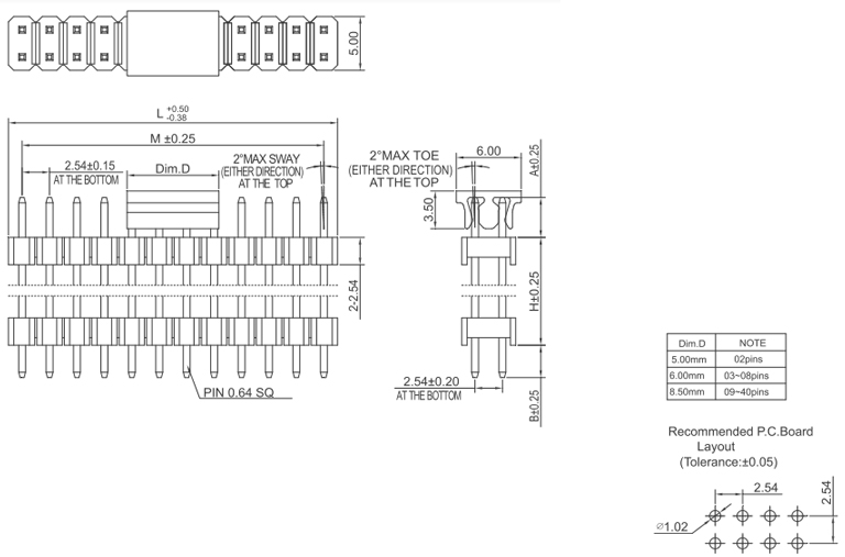 P/H2.54mm 雙排排針 HA202