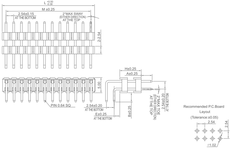 P/H2.54mm 雙排排針 HB202