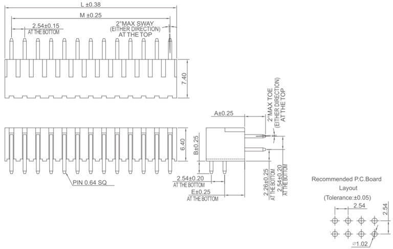 P/H2.54mm 雙排排針 HB212