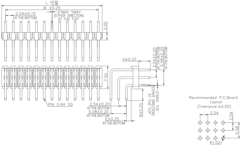 P/H2.54mm 三排排針 PHB301