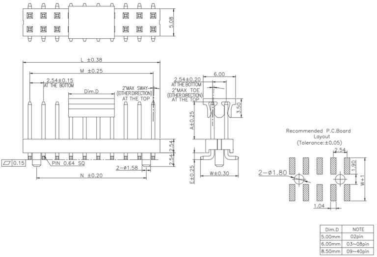 P/H2.54mm 雙排排針 HC201
