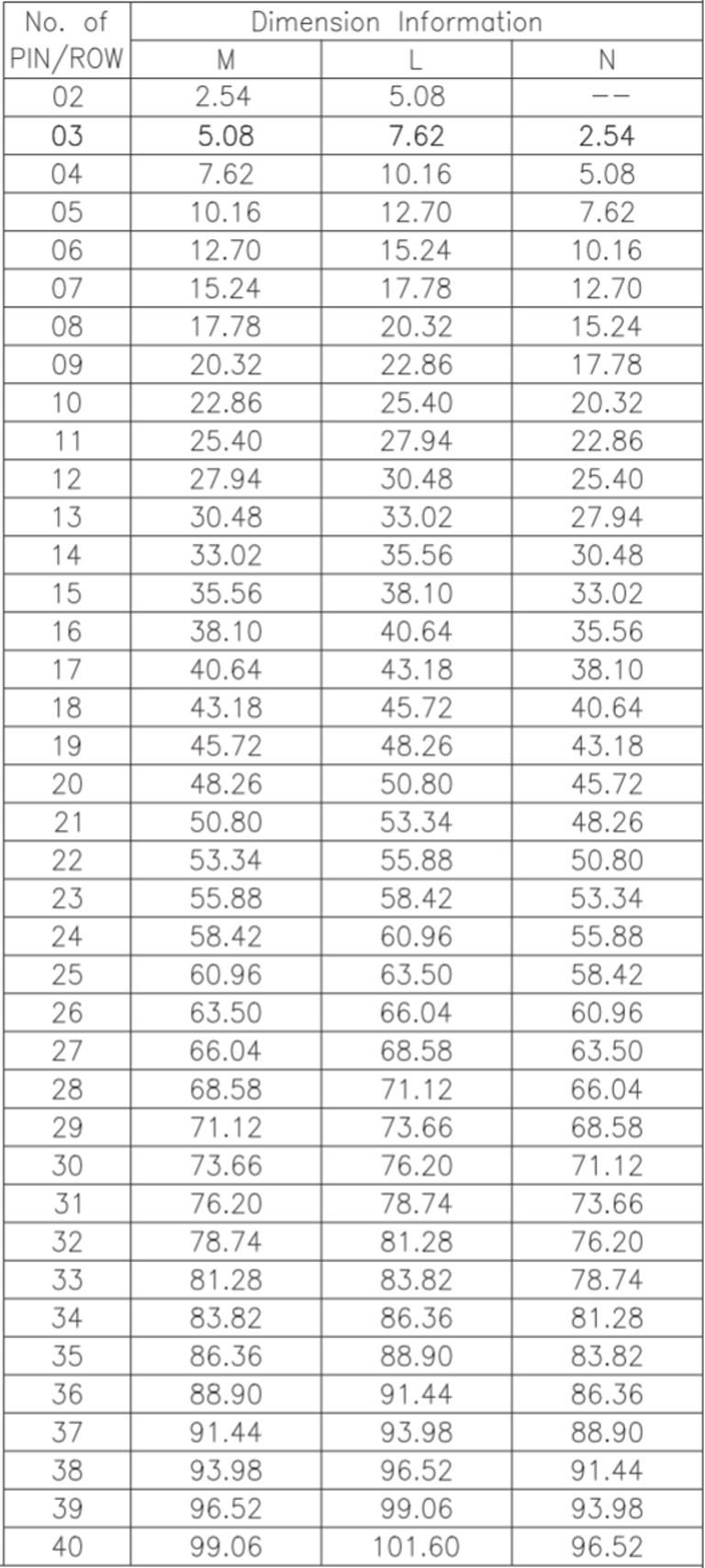P/H1.0 mm 單排排針 CA101