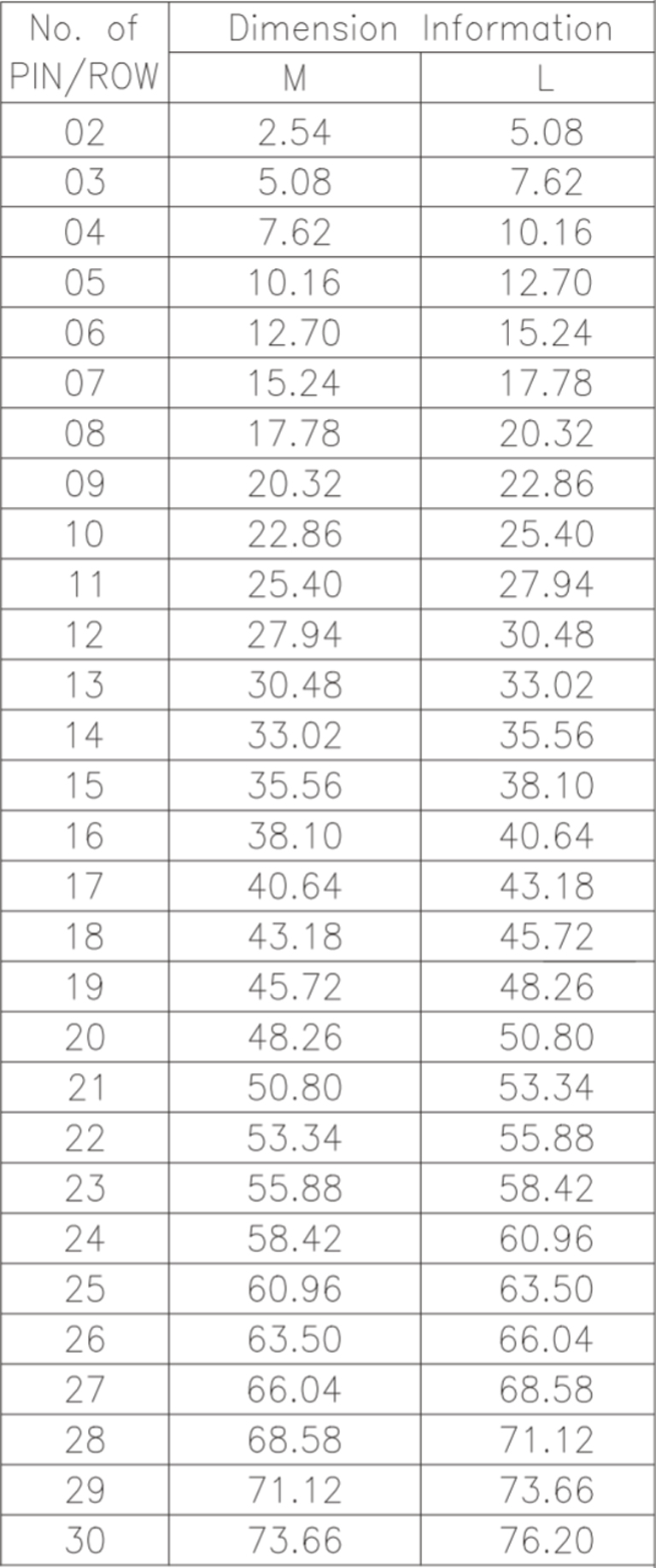 P/H1.0 mm 單排排針 CA101