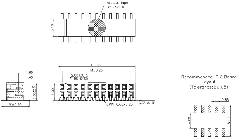 絕緣材料:PBT,尼龍,LCP,UL 94V-0