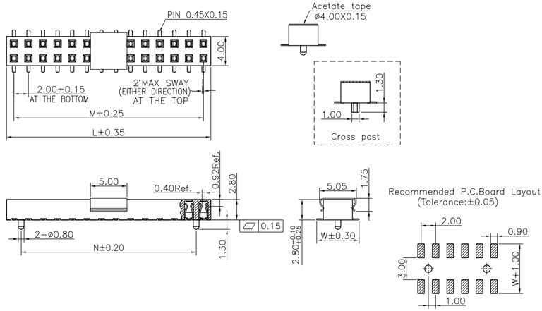 絕緣材料:PBT,尼龍,LCP,UL 94V-0
