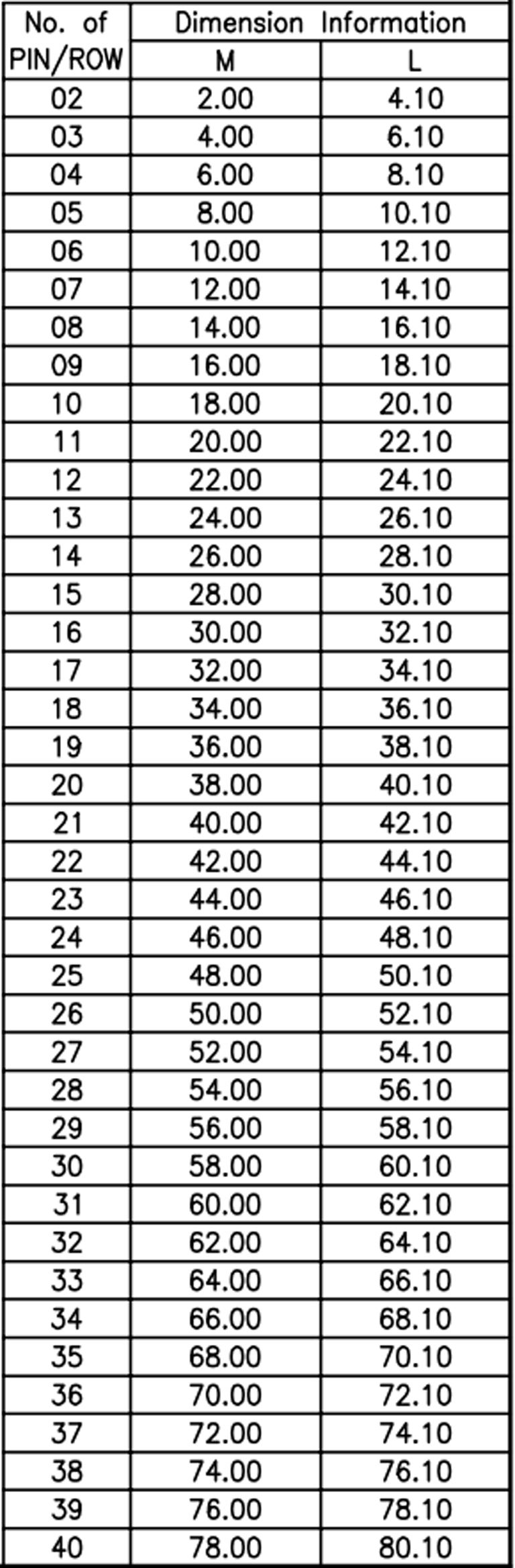 P/H1.0mm 雙排排母 CC211