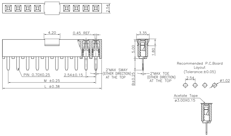 P/H2.54mm 單排排母 HA106