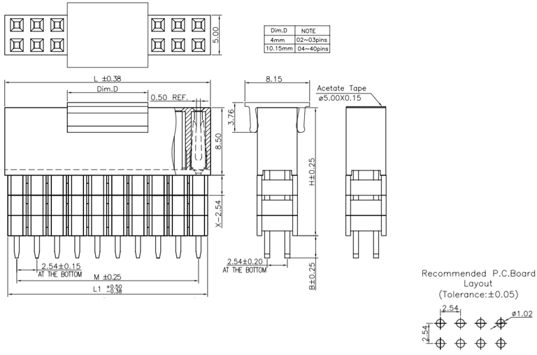 P/H2.54mm 雙排排母 HA202