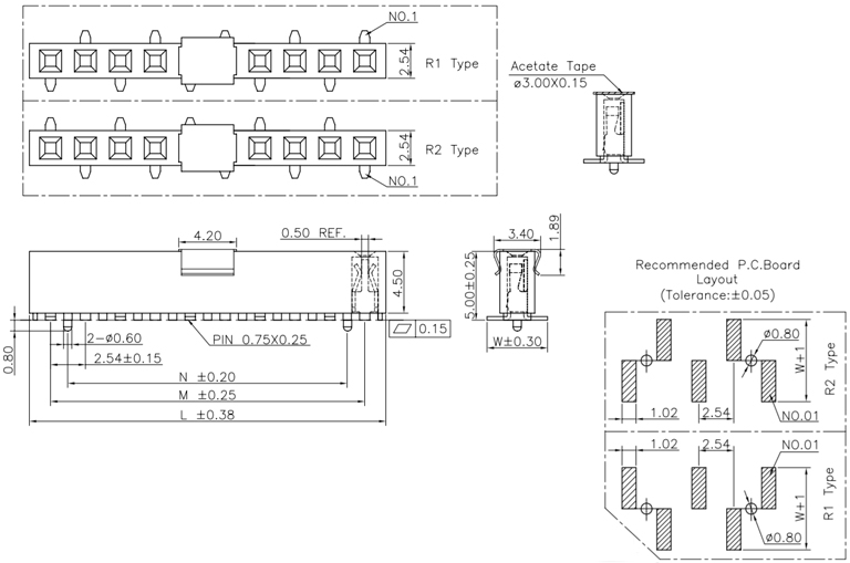 P/H2.54mm 單排排母 HC129