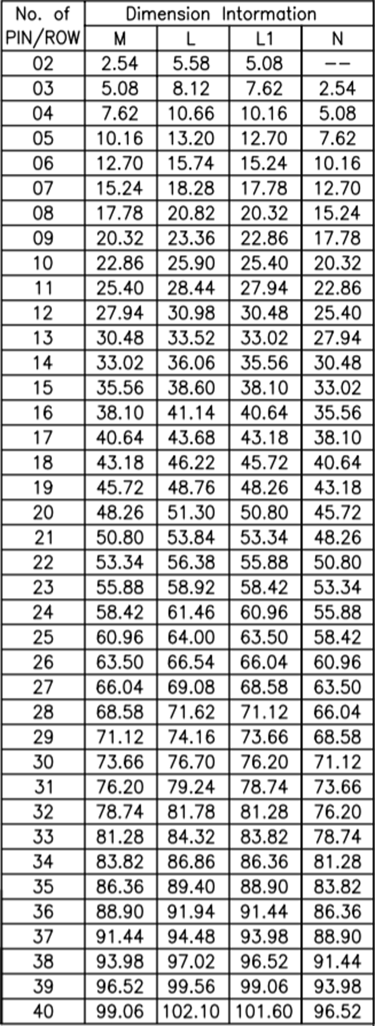 P/H2.54mm 雙排排母 HC204