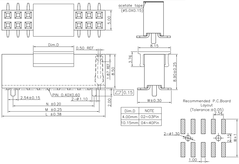 P/H2.54mm 雙排排母 HC205