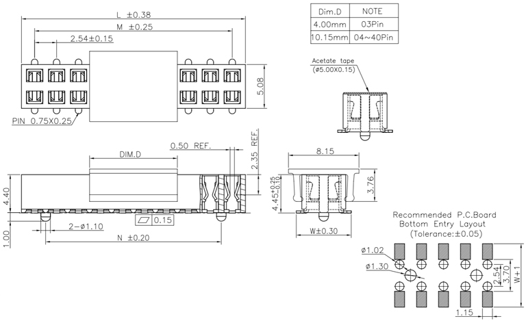 絕緣材料:PBT,尼龍,LCP,UL 94V-0